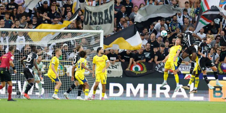 UDINE (ITALPRESS) – L’Udinese sbatte sul muro dell’Hellas Verona. La squadra di Kosta Runjaic non va oltre un pareggio per 1-1 nella sfida contro gli scaligeri, valevole per la prima giornata di campionato: al vantaggio di Kristensen risponde Serdar. Gli uomini allenati da mister Paolo Zanetti si rendono protagonisti di un buon avvio di partita, con Frese e Fallou che si dimostrano tra i più attivi. I bianconeri, dopo una prima fase complicata, iniziano a cambiare marcia e al 23′ si ritagliano un’interessante occasione da rete: Davis approfitta di un errore di Frese e mette in mezzo per Zemura che però, da buona posizione, calcia alto sopra la traversa. L’Udinese continua a crescere con il passare dei minuti, così gli scaligeri sono costretti a rintanarsi nella propria metà campo per respingere le offensive degli avversari. Nel finale di primo tempo, però, è proprio l’Hellas a rendersi pericoloso con una conclusione di Giovane, che viene disinnescata in tuffo da Sava. Le due squadre vanno a riposo sul parziale di 0-0. In apertura di ripresa la squadra gialloblù va molto vicina al gol dell’1-0 in due occasioni con Giovane, che prima viene arginato da Sava e poi dalla traversa. Neanche il tempo di metabolizzare la delusione per gli scaligeri, che i friulani si portano in vantaggio al 53′ con Thomas Kristensen: sugli sviluppi di un corner calciato da Lovric, il difensore trova l’incornata vincente. Il Verona, forte anche dei cambi effettuati da Zanetti, torna subito a spingere e, dopo una conclusione di Sarr respinta dalla difesa avversaria, agguanta il pareggio al 73′. Anche in questo caso l’azione si sviluppa su un calcio d’angolo spizzato da Giovane, che favorisce l’inserimento di Suat Serdar, abile nell’anticipare Ehizibue e depositare la sfera in fondo al sacco per l’1-1. All’84’ la squadra di Runjaic fallisce un’ottima occasione per tornare in vantaggio con Kamara che, liberato dal tacco di Bayo, colpisce una clamorosa traversa. Nel finale Udinese e Hellas Verona sembrano accontentarsi di un pareggio, così cominciano la loro stagione con un punto per parte.