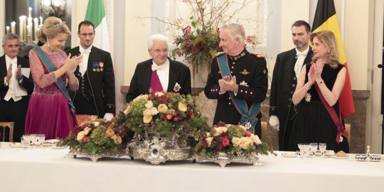 BRUXELLES (BELGIO) (ITALPRESS) – “Oggi le Istituzioni Europee, che Bruxelles si è assunta il compito di accogliere, si confrontano con sfide esistenziali. Regno del Belgio e Repubblica Italiana, forti dei loro valori e della loro storia democratica, possono sostenere l’Unione Europea in una fase storica in cui sfide globali vogliono porre in discussione principi fondanti della nostra stessa Unione e della convivenza pacifica tra i popoli. Non possiamo permetterci cedimenti. L’Unione è garanzia della libertà e del progresso dei nostri popoli. Sono intollerabili narrative e atti che vorrebbero indebolire la sovranità e la libertà del popolo europeo e degli altri popoli”. Lo ha detto il presidente della Repubblica, Sergio Mattarella, nel brindisi al Palazzo Reale di Bruxelles, in occasione della visita di Stato nel Regno del Belgio.