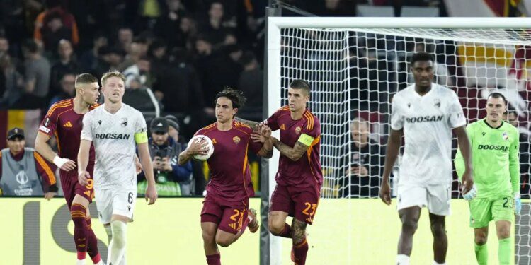 ROMA (ITALPRESS) – Altra serata amara per la Roma che gioca una partita sottotono e tecnicamente imprecisa contro il Viktoria Plzen e perde in casa per 1-2 nella terza giornata di Europa League. Un altro ko, quindi, per i giallorossi, che non riescono a replicare la prestazione vista con l’Inter, nonostante la sconfitta, e, anzi, perdono ancora in casa dopo la sfortunata serata contro il Lille. Confermando, inoltre, le grandi difficoltà a segnare. Tra i titolari scelti da Gasperini spicca il debutto da titolare di Ziolkowski in difesa, mentre in attacco ci sono Soulè e Dybala dietro a Dovbyk. Pronti-via e il centravanti ucraino trova il tiro, facile per Jedlicka. Ma si vedono subito anche le incertezze in difesa, con un pasticcio tra Svilar e Hermoso, salvati dal fuorigioco di Durosinmi. Al 20′ Adu fa valere tutto il suo strapotere fisico sorprendendo Ziolkowski e battendo Svilar da pochi passi. La Roma accusa il colpo e va in confusione: al 22′ Wesley sbaglia un rilancio con il mancino, Dweh intercetta e scarica su Souarè, che lascia partire un gran tiro dai 25 metri che si infila all’angolino basso alla sinistra di Svilar.