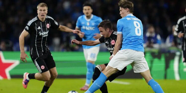 Conte ritrova Lobotka, al rientro da titolare dopo un mese fuori per infortunio, e a sinistra propone l’inedita catena formata da Gutierrez e Elmas. Il canovaccio della partita è chiaro fin da subito, con il Napoli che prova a comandare il gioco tramite il possesso palla, mentre l’Eintracht aspetta e prova a ripartire con grande velocità. Al 6′ la prima occasione per gli azzurri, con Hojlund e Anguissa che si ostacolano a vicenda al momento del tiro su un cross di Gutierrez, poi Zetterer mura il secondo tentativo del danese. Questo, di fatto, è l’unico lampo del primo tempo; nel Napoli pesa la serata negativa di Anguissa e soprattutto McTominay, mentre sugli esterni Politano non riesce mai a saltare Brown, senza dubbio migliore in campo. Nella ripresa, Kristensen manca lo specchio di poco dalla distanza, ma viene fermato tutto per un fallo precedente, mentre, al 73′, Milinkovic-Savic si fa trovare pronto sul tiro potente ma centrale di Knauff, “smarcato” da un goffo intervento di Buongiorno. Positivo l’ingresso di Lang, che al 76′ crea un’occasione importante sprecata ancora da Anguissa, che forse non si aspettava il passaggio di Elmas. Il centrocampista camerunense è autore di una bella cavalcata sulla destra all’83’, ma il suo cross viene malamente sprecato da McTominay, che spara alle stelle. Ancora Anguissa ci prova di testa all’89’, ma centra in pieno Koch, poi Di Lorenzo manca la ribattuta a rete calciando alto. All’ultimo respiro, Collins respinge il tentativo di Elmas e Zetterer blocca la deviazione in mischia di Hojlund. Al fischio finale, dagli spalti del Maradona si sente anche qualche fischio per il Napoli, che spreca un’altra occasione per fare i tre punti e vede complicarsi il discorso qualificazione.