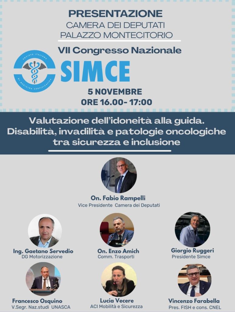 All’evento hanno partecipato figure di spicco come l’On. Fabio Rampelli (Vice Presidente della Camera), l’On. Enzo Amich (Commissione Trasporti), l’Ing. Gaetano Servedio (Motorizzazione Civile), Francesco Osquino (UNASCA), Lucia Vecere (ACI) e Vincenzo Farabella (FISH e CNEL).