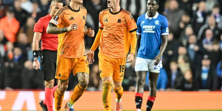 GLASGOW (SCOZIA) (ITALPRESS) – Nell’emergenza offensiva, la Roma ritrova i gol e la vittoria. Senza gli infortunati Dybala, Ferguson e Bailey, la squadra di Gasperini batte i Rangers 2-0 all’Ibrox Stadium e sale a 6 punti in classifica in Europa League. Sono le reti di Soulè e Pellegrini a permettere ai giallorossi di lasciarsi alle spalle le sconfitte casalinghe europee contro Lille e Viktoria Plzen e quella più recente in campionato contro il Milan. A San Siro i giallorossi avevano approcciato bene alla partita, sprecando però troppo sotto porta. In Scozia invece la Roma colpisce alla prima occasione. Al 13′ su calcio d’angolo di Pellegrini, Cristante attacca il primo palo e serve un assist sul secondo per il colpo di testa vincente di Soulè. Se la prima rete è frutto di un cavallo di battaglia dei giallorossi, la seconda nasce dai piedi di due calciatori sotto esame: Dovbyk scatta in posizione regolare, mette giù il pallone e serve Pellegrini che col destro mira l’angolino basso e realizza il 2-0. Al 45′ si invertono i ruoli: il numero 7 trova in area l’ucraino, che non se la sente di calciare col piede debole e scarica per il sinistro fuori misura di Soulè. La Roma rischia poco nel primo tempo.