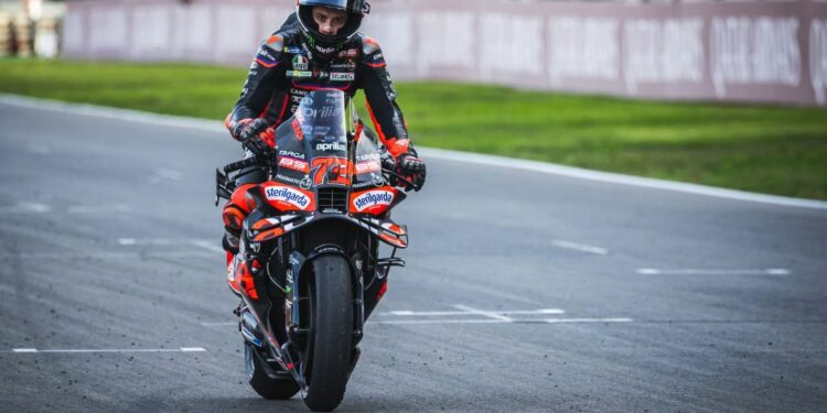 PORTIMAO (PORTOGALLO) (ITALPRESS) – Marco Bezzecchi (Aprilia) vince il Gran Premio del Portogallo, sul circuito di Portimao, ventunesimo appuntamento del Mondiale di MotoGP. Il pilota italiano ha letteralmente dominato la sessione, scattando dalla pole e non lasciando mai la testa della corsa, chiudendo con 2″583 di vantaggio su Alex Marquez (Ducati Gresini), che nel finale resiste agli assalti di Pedro Acosta (Ktm). Giù dal podio un altro spagnolo, Fermin Aldeguer (Ducati Gresini), davanti a Brad Binder (Ktm) e Fabio Quartararo (Yamaha). Caduto all’undicesimo giro Francesco Bagnaia (Ducati) mentre era in quarta posizione. Nicolò Bulega, con l’altra Ducati ufficiale, ha chiuso quindicesimo.