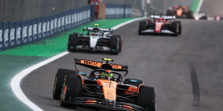SAN PAOLO (BRASILE) (ITALPRESS) – Lando Norris compie un passo importante verso il titolo mondiale. Il pilota della McLaren, dopo pole e sprint, conquista il successo anche nella gara del Gran Premio del Brasile 2025 di Formula 1. Secondo posto per un solido Andrea Kimi Antonelli (Mercedes), capace di tenere dietro anche la Red Bull di un immenso Max Verstappen, che si rende protagonista di una eccezionale rimonta partendo dalla pit lane. George Russell chiude ai piedi del podio, ma porta a casa preziosi punti per la Mercedes in ottica secondo posto nella classifica costruttori. Oscar Piastri, penalizzato di 10″, deve accontentarsi della quinta posizione, perdendo ulteriore terreno dal compagno di squadra, ora a -24. Pesantissimo zero, invece, per la Ferrari: Charles Leclerc e Lewis Hamilton, infatti, sono entrambi costretti al ritiro e in Brasile non accadeva dal 2002. Completano la top 10 di giornata Oliver Bearman (Haas), Liam Lawson (Racing Bulls), Isack Hadjar (Racing Bulls), Nico Hulkenberg (Kick Sauber) e Pierre Gasly (Alpine).