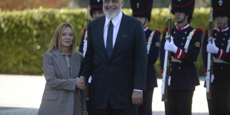 Ed è proprio sull’adesione dell’Albania ai negoziati Ue che il primo ministro albanese Rama auspica: “Sarebbe veramente la ciliegina sulla torta nel 2028, quando l’Italia avrà la presidenza del Consiglio europeo e quando Giorgia sarà nella doppia veste di presidente del Consiglio italiano e del Consiglio europeo. Non vedo l’ora di arrivarci, se noi togliamo l’Italia dal quadro della vita albanese degli ultimi 35 anni certamente l’Albania non sarebbe il Paese che è, ma sarebbe in condizioni molto più complicate. Questa cosa non posso dirla per nessun altro Paese. Noi siamo seguaci e fanatici dei valori europei e non abbiamo nessuna intenzione di mettere veti”, assicura. Anche Rama parla di una “giornata storica perchè per la prima volta il governo albanese si siede” al tavolo “con quello italiano per parlare di progetti comuni, per fare un bilancio delle cose fatte e firmare accordi concreti per progetti concreti”. E a chi gli domanda se si è pentito dell’accordo sui centri risponde: “li rifarei altre cento volte, con altri Paesi mai e se qualcuno mi chiede il perchè io rispondo: perchè non siete l’Italia che potete chiedere all’Albania tutto ciò che viene in mente. All’Italia noi siamo sempre pronti a rispondere di sì”, conclude.