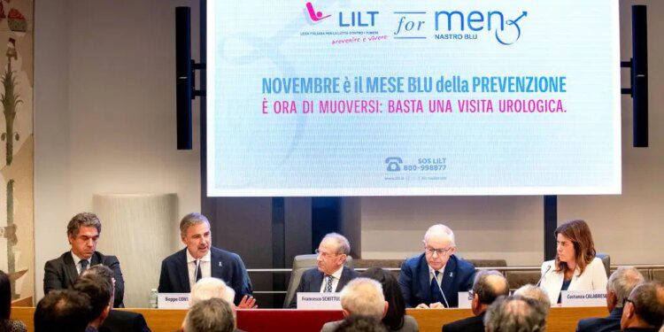 ROMA (ITALPRESS) – In Italia, un uomo ogni 9 riceve una diagnosi di tumore alla prostata. E’ la neoplasia più diffusa della sfera genitale maschile e per questo spesso temuta, ma di cui non bisogna avere paura: grazie a prevenzione e diagnosi precoce, si registra una percentuale di guarigione superiore al 90%. E’ il messaggio lanciato dalla campagna nazionale Nastro Blu 2025, promossa dalla LILT-Lega Italiana per la Lotta contro i Tumori, dedicata alla sensibilizzazione e alla prevenzione delle più frequenti patologie oncologiche maschili e presentata oggi al Museo Ninfeo-ENPAM di Roma.