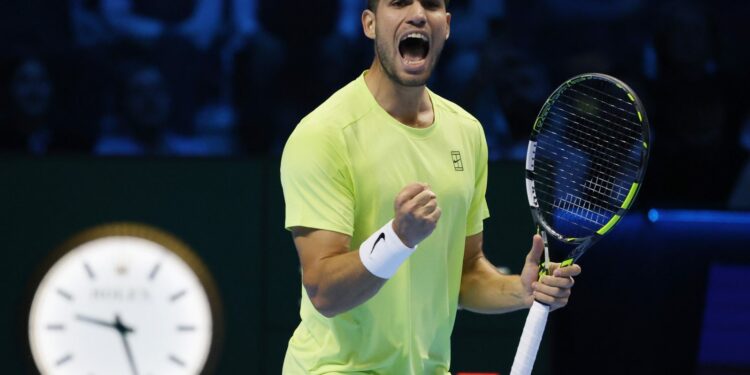 TORINO (ITALPRESS) – Carlos Alcaraz batte Lorenzo Musetti nell’ultima partita del girone “Connors” delle Atp Finals, in corso a Torino, alla Inalpi Arena. 6-4 6-1 il punteggio in favore della spagnolo, dopo un’ora e 24 minuti di gioco: un risultato che ha una valenza doppia per Alcaraz, che ottiene la terza vittoria su tre match giocati nel girone del “Master”, chiuso in testa, ma che, soprattutto, si è assicurato di chiudere l’anno da numero uno del ranking Atp. Dopo un primo set equilibrato e conquistato da Alcaraz grazie al break nel decimo gioco, il secondo parziale ha visto lo spagnolo prendere il sopravvento sul carrarino, che alla lunga ha perso lucidità e freschezza: ne consegue che la palla break annullata nel secondo game è solo l’anticipo dei due break consecutivi arrivati nel quarto e nel sesto gioco. In mezzo, due palle del contro break annullate da Alcaraz, che però chiude i conti al terzo match point nel turno in battuta del settimo game.