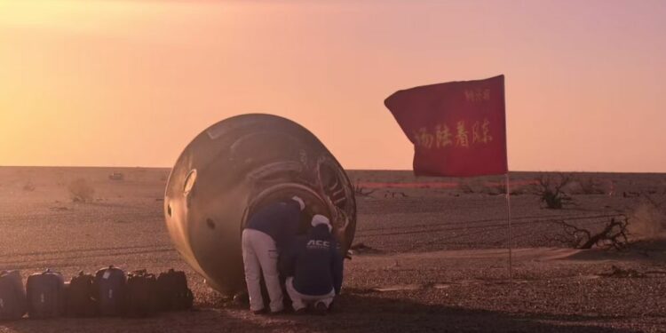 JIUQUAN (CINA) (ITALPRESS/XINHUA) – La capsula di rientro della navicella spaziale Shenzhou-21, che trasportava gli astronauti della missione Shenzhou-20 Chen Dong, Chen Zhongrui e Wang Jie, ha toccato terra venerdì al sito di atterraggio di Dongfeng, nella regione autonoma della Mongolia Interna, nel nord della Cina.