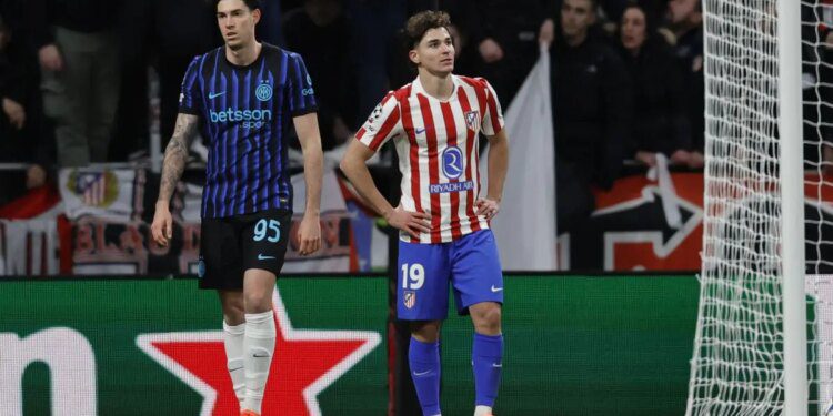MADRID (SPAGNA) (ITALPRESS) – Cade l’imbattibilità stagionale in Champions League dell’Inter. Dopo il derby perso contro il Milan in campionato, la squadra di Chivu viene sconfitta 2-1 al Metropolitano dall’Atletico Madrid di Diego Simeone, che trova il gol vittoria con Gimenez al 93′, in risposta al momentaneo pareggio di Zielinski, dopo il vantaggio iniziale dei padroni di casa, firmato Alvarez. Una beffa per i nerazzurri che restano a 12 punti nel gruppo d’alta classifica in compagnia di Psg, Bayern Monaco e Real Madrid, alle spalle solo dell’Arsenal capolista (15). La lunga scia di rimpianti è accompagnata dalle tante occasioni costruite da Bonny e compagni. Le prime chance sono infatti dell’Inter. Al 3′ doppia occasione per Dimarco che prima ci prova su punizione dalla destra (sfera respinta da Musso) e poi con un rasoterra da posizione defilata che termina di poco fuori. Alla prima vera chance, però, passa l’Atletico. Al 9′ un cross dalla destra del figlio d’arte Giuliano Simeone, leggermente deviato, porta ad una carambola in area che favorisce il tocco vincente in rete di Alvarez. L’arbitro Letexier annulla inizialmente l’1-0 per un presunto tocco col braccio di Baena nel rimpallo con Carlos Augusto, ma il Var lo richiama e al monitor il direttore di gara sceglie di convalidare quella che è la decima rete in quattordici presenze europee con i colchoneros del bomber argentino.