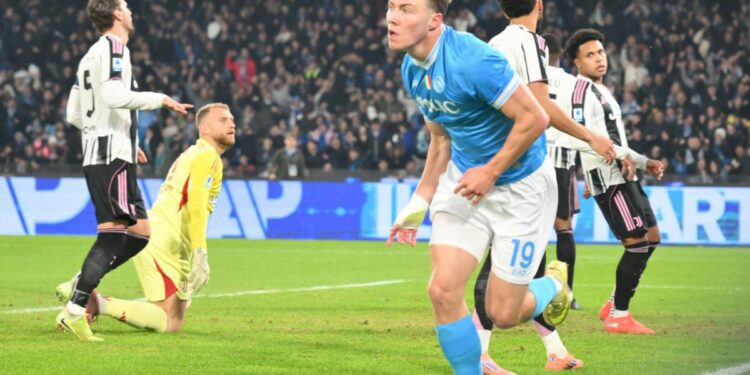 NAPOLI (ITALPRESS) – Dopo le vittorie contro Atalanta e Roma, il Napoli batte, per 2-1, anche la Juventus e si ritrova capolista della Serie A, da solo, in attesa del Milan (in campo domani contro il Torino). Il mattatore della serata è Rasmus Hojlund, autore di un gol per tempo: “inutile”, dunque, la rete del momentaneo pareggio firmata da Yildiz.