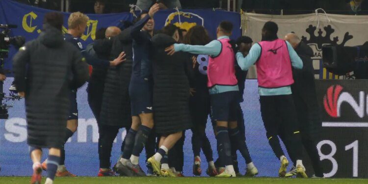 PARMA (ITALPRESS) – Una vittoria eroica della Lazio che torna a vincere in trasferta dopo quattro gare a secco e lo fa in nove uomini al “Tardini”. La squadra di Sarri batte il Parma 1-0 grazie al gol di Noslin e si porta ad un punto dalla Juventus settima. Una sconfitta pesante per la formazione di Cuesta, che si conferma peggior attacco della Serie A (10 gol, come il Pisa) nonostante la doppia superiorità numerica maturata con i rossi a Zaccagni (42′) e Basic (78′). E’ una partita a due facce, ma la Lazio ha sempre mantenuto ordine anche nel momento più difficile. Nel primo tempo regna l’equilibrio, testimoniato anche dai numeri. Sono due i tiri nello specchio a testa per le due squadre nei quarantacinque minuti iniziali. Provedel risponde presente al 14′ sulla conclusione di Bernabè e nel finale di tempo su Oristanio. Gli interventi più difficili però li compie Corvi, alla quarta presenza da titolare dopo l’infortunio di Suzuki. Il 24enne prima respinge un tiro ravvicinato di Cancellieri al 4′, poi neutralizza a mano aperta una conclusione a botta sicura in area di Basic. Dove non arriva Corvi, c’è Estevez, decisivo sulla linea nel negare a Marusic il gol sugli sviluppi di un calcio piazzato al 16′. Ed è proprio Estevez a subire al 42′ l’intervento duro di Zaccagni che per l’arbitro Marchetti è meritevole di espulsione. Nella ripresa il Parma prova a spingere sull’acceleratore, ma nei primi quindici minuti i padroni di casa si limitano a produrre una conclusione centrale di Pellegrino. Al 68′ Sarri spende i primi cambi: fuori Patric (alla prima presenza da titolare in stagione), Cancellieri e Castellanos; dentro Provstgaard, Dele-Bashiru e Noslin. Il Parma risponde con l’ingresso di Ondrejka al posto di uno spento Oristanio. Al 78′ la Lazio resta addirittura in nove: Basic colpisce a gioco fermo il solito Estevez e riceve quella che è la quinta espulsione della stagione biancoceleste (nessuno ne ha di più in Italia). Eppure, la squadra di Sarri sembra avere le idee più chiare degli avversari. E all’82’ Noslin, dopo un errore di Valenti, firma il clamoroso 1-0 biancoceleste: dribbling su Corvi e appoggio in rete. Poi è Provedel a completare l’opera con un grande intervento su Estevez. La Lazio si regala la vittoria più bella della stagione. Per il Parma – fermo a 14 punti in classifica – quello del gol è un problema sempre più urgente.