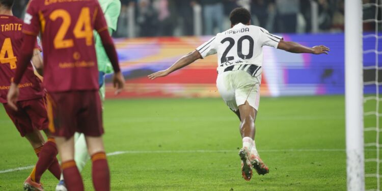 TORINO (ITALPRESS) – La Juventus batte la Roma 2-1 all’Allianz Stadium e si porta a -1 dal quarto posto occupato proprio dai giallorossi. Sono le reti di Conceicao (uscito per infortunio nella ripresa) e Openda a regalare continuità alla squadra di Luciano Spalletti dopo la bella vittoria esterna sul Bologna. Non è un risultato qualunque per i bianconeri, bensì un successo che aggiunge autostima e fiducia. La Roma infatti si presentava a Torino con la miglior difesa del campionato (8 gol presi prima di stasera) e senza aver mai preso più di un gol a partita in Serie A. Il reparto arretrato scelto da Gasperini allo Stadium è però inedito. Ndicka è con la Costa d’Avorio in Coppa d’Africa, mentre Hermoso parte dalla panchina per un affaticamento. La scelta del tecnico quindi, oltre che su Mancini, ricade su Ziolkowski e Rensch. Il sistema di duelli a tutto campo di Gasperini regge per quasi un tempo, poi la retroguardia giallorossa inizia a scricchiolare: al 43′ Conceicao ha la palla dell’1-0, ma calcia sul corpo di Svilar. Lo stesso duello si ripete due minuti dopo: il fraseggio nello stretto tra Yildiz e Cambiaso si chiude con il diagonale vincente del portoghese figlio d’arte, autore del terzo gol stagionale, il secondo in campionato. Al 52′ altra chance: Yildiz scambia con Openda e arriva a calciare col mancino sfiorando il secondo palo. L’estro del turco mette alle corde la Roma poco dopo: Yildiz sfonda centralmente e serve Conceicao che supera la carica di Wesley e prova a beffare Svilar col tacco, trovando l’opposizione del portiere serbo. Gasperini capisce il momento e cambia l’intero tridente d’attacco: fuori Pellegrini, Dybala e Soulè; dentro Bailey (costretto ad uscire al 73′ per un problema fisico), Ferguson e Baldanzi. Le prime sostituzioni di Spalletti sono invece obbligate: Conceicao chiede il cambio per un problema muscolare, Bremer invece si ferma per una gestione delle energie dopo il lungo stop. In campo vanno quindi Zhegrova e Rugani. Tatticamente non cambia nulla e nemmeno il copione di gioco subisce modifiche. Il 2-0 al 70′ nasce proprio da un cross di Zhegrova. McKennie va a colpire di testa in anticipo su Ziolkowski: Svilar si oppone, ma non può nulla sul servizio intelligente dello statunitense per Openda che appoggia in rete da due passi. Cinque minuti dopo però la Roma la riapre con Baldanzi, tempestivo nel depositare in rete dopo una deviazione di Di Gregorio sul diagonale precedente di Ferguson. La squadra giallorossa ci crede e lascia spazi: Yildiz ha la palla del ko all’80’ ma il suo destro si stampa sul palo. Il risultato non cambia più. La Juventus si riaffaccia nella bagarre per lo Scudetto.