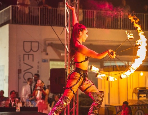 Come da tradizione al The Beach, non mancheranno artisti, vip, sportivi e volti noti del mondo dello spettacolo. Tutti insieme, al termine del dinner show, scenderanno in pista con gli ospiti del club, accompagnati dalla musica di due DJ che si alterneranno in console. La cena prenderà il via alle 21, mentre il beach party scatterà allo scoccare della mezzanotte.