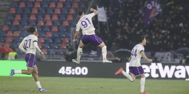 BOLOGNA (ITALPRESS) – La Fiorentina domina il Bologna e ricorda nel migliore dei modi il presidente Rocco Commisso. Sotto il diluvio del Dall’Ara, la Viola batte per 2-1 un brutto Bologna e trova la prima vittoria in trasferta del suo campionato. I gol portano le firme di Mandragora e Piccoli per gli ospiti e di Fabbian, ma solo nel finale, per i rossoblù. Nonostante il profondo dolore, la Fiorentina è voluta scendere ugualmente in campo per onorare Commisso, indossando il lutto al braccio e una maglia celebrativa nel riscaldamento. Inoltre, tutto il gruppo squadra ha partecipato alla trasferta, compresi gli infortunati (tra cui Kean). Il primo tempo è un monologo viola, anche per demerito di un Bologna spento e in affanno nel contenere le iniziative avversarie sulle fasce. Al 17′ la rete di Ndour viene annullata per il fuorigioco di rientro di Parisi a inizio azione. La formazione emiliana, però, non coglie il campanello d’allarme e, due minuti più tardi, si lascia nuovamente sorprendere, stavolta da Mandragora. Su assist di Gudmundsson, il centrocampista attacca il secondo palo e devia il pallone in rete, firmando l’1-0 e punendo la staticità della difesa del Bologna.