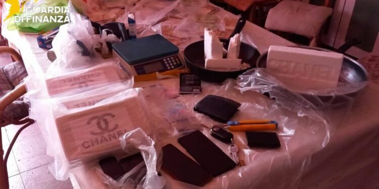 COSENZA (ITALPRESS) – La Guardia di Finanza di Cosenza ha individuato un casolare, nel comune di Cetraro, utilizzato per il taglio e il confezionamento di sostanza stupefacente. All’interno dell’immobile sono stati rinvenuti e sequestrati 5 panetti di cocaina pari a circa 5 Kg e mezzo e 750 grammi di marijuana e attrezzatura varia per il taglio, la pesatura e il confezionamento, unitamente a banconote pari a oltre 100 mila euro accuratamente suddivise in più “mazzette” impacchettate in buste sottovuoto. Inoltre, adiacente l’immobile è stata rinvenuta e sequestrata un’autovettura con doppio-fondo per il trasporto occulto dello stupefacente.