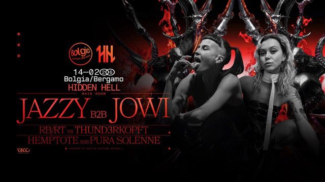 Al Bolgia di Bergamo, riferimento da decenni dell’elettronica internazionale, sabato 14 febbraio 2026 va in scena un imperdibile back2back tra Jazzy e Jowi, protagoniste della scena elettronica internazionale con la loro hard techno scatenata.