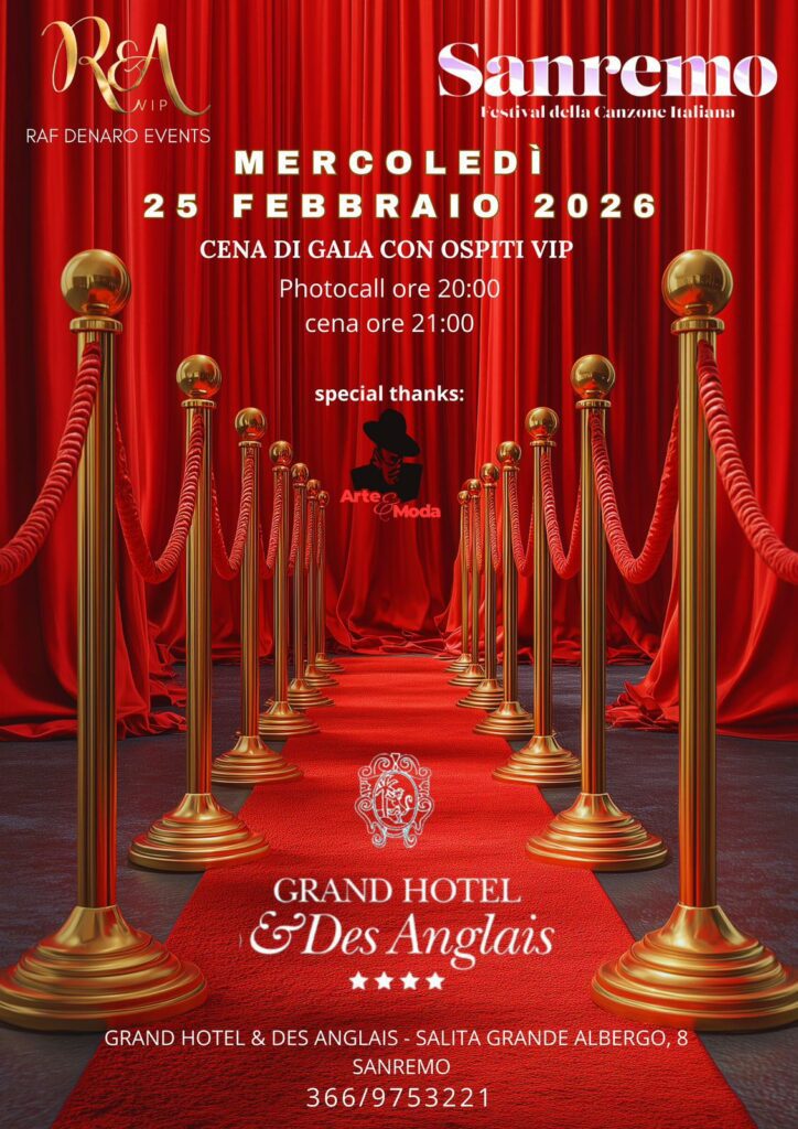 Non solo Festival. Durante la settimana più mediatica d’Italia, a far discutere potrebbe essere anche un altro appuntamento esclusivo: il “Gran Galà dell’Eleganza”, in programma mercoledì 25 febbraio 2026 nella prestigiosa cornice del Grand Hotel & Des Anglais.