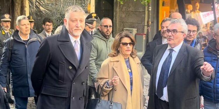 NAPOLI (ITALPRESS) – “E’ ovvio che siamo di fronte a una tragedia dal punto di vista culturale, ma da questa tragedia può venire fuori una splendida forma di cooperazione tra istituzioni differenti per raggiungere un obiettivo che è quello di creare una struttura ancora più forte e che dia una continuità e una solidità al Teatro Sannazaro che vada nella direzione migliore da qui a tutti gli anni che verranno”. Lo ha detto il ministro della Cultura, Alessandro Giuli, parlando con i giornalisti al termine del vertice in Prefettura a Napoli del Centro Coordinamento Soccorsi attivato a seguito dell’incendio che ha distrutto il Teatro Sannazaro. Prima dell’incontro, Giuli ha partecipato a un sopralluogo all’esterno del Teatro, completamente distrutto ieri da un incendio divampato all’alba. Al suo arrivo il ministro è stato accolto dal sindaco di Napoli, Gaetano Manfredi, dal comandante provinciale dei vigili del fuoco Giuseppe Paduano, dall’assessore regionale alla Cultura, Ninni Cutaia, e dal prefetto di Napoli, Michele di Bari. Davanti all’ingresso principale del Sannazaro l’incontro con i proprietari, Lara Sansone e Sasà Vanorio, che hanno abbracciato il ministro. “Ciascuno di noi – ha proseguito Giuli – serba un meraviglioso ricordo del teatro Sannazaro. Abbiamo il dovere di guardare alla prospettiva”. “Abbiamo iniziato a stabilire un percorso – ha sottolineato – che ci porterà con la collaborazione dei gestori, proprietari del Teatro Sannazaro, le istituzioni locali e nazionali a raggiungere il prima possibile l’obiettivo di restaurare e rigenerare il teatro senza che la programmazione delle attività del teatro venga meno. Napoli c’è, la Regione c’è e il ministro della Cultura vi assicura il massimo sforzo del governo di Giorgia Meloni e del ministero per questo lavoro di cooperazione e di intervento”. “Il prefetto che ci ospita è una figura di assoluta garanzia affinchè tutte le procedure possano essere snelle e possano essere efficaci”, ha aggiunto Giuli.