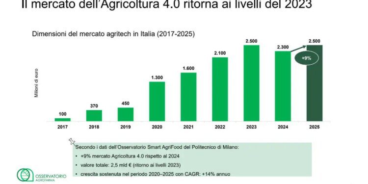 Parlando di innovazione, l’Osservatorio Agrofarma richiama anche i dati dell’Osservatorio Smart AgriFood – Politecnico di Milano e Università di Brescia, che evidenziano una ripresa del mercato dell’Agricoltura 4.0, trainata dal ruolo sempre più rilevante dell’Intelligenza Artificiale come tecnologia abilitante. Cresce la fiducia tra le aziende utilizzatrici, che riportano benefici concreti e misurabili dalle soluzioni digitali adottate. Guardando invece alle tecnologie emergenti, le sperimentazioni regionali sui droni avviate dal 2022 stanno dando esiti molto positivi, soprattutto su vite, olivo e colture ad alto valore.