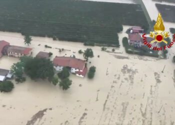 RAVENNA (ITALPRESS) - Due elicotteri dei vigili del fuoco in azione a Ravenna per soccorsi alla popolazione. Tra Bagnacavallo, Lugo ...