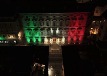 Giorno del Ricordo, la facciata di Palazzo Madama illuminata con il Tricolore