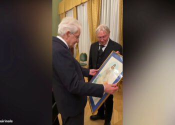 VERONA (ITALPRESS) - Il presidente della Repubblica, Sergio Mattarella, ha incontrato il disegnatore e fumettista Milo Manara al Museo Lapidario...
